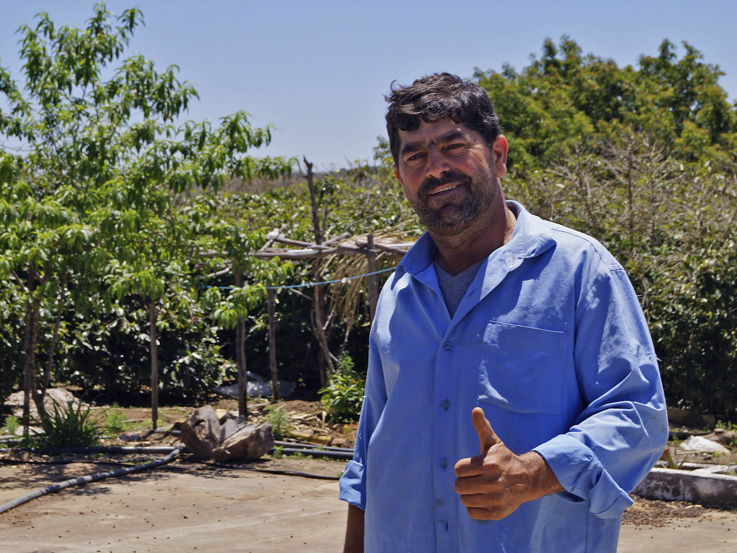 Esse compromisso com todo o processo também é visto na lavoura de Maridalton, que está plantada a 1340m de altitude. Ele nos mostra com orgulho o sombreamento da sua lavoura, o que é feito com grevíleas e o resultado é uma grande concentração de matéria orgânica nas raízes dos pés de café.