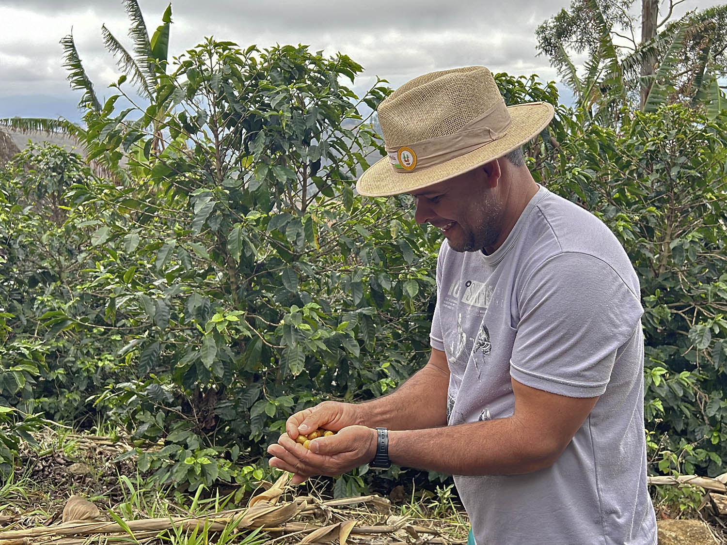 Edílio é apaixonado pela agricultura. E, por isso, ele não poderia ficar só no café! O produtor também planta banana, laranja, pitaya, pêssego, feijão, batata, mandioca e diversos outros alimentos, além de contar com inúmeras variedades de café na propriedade.